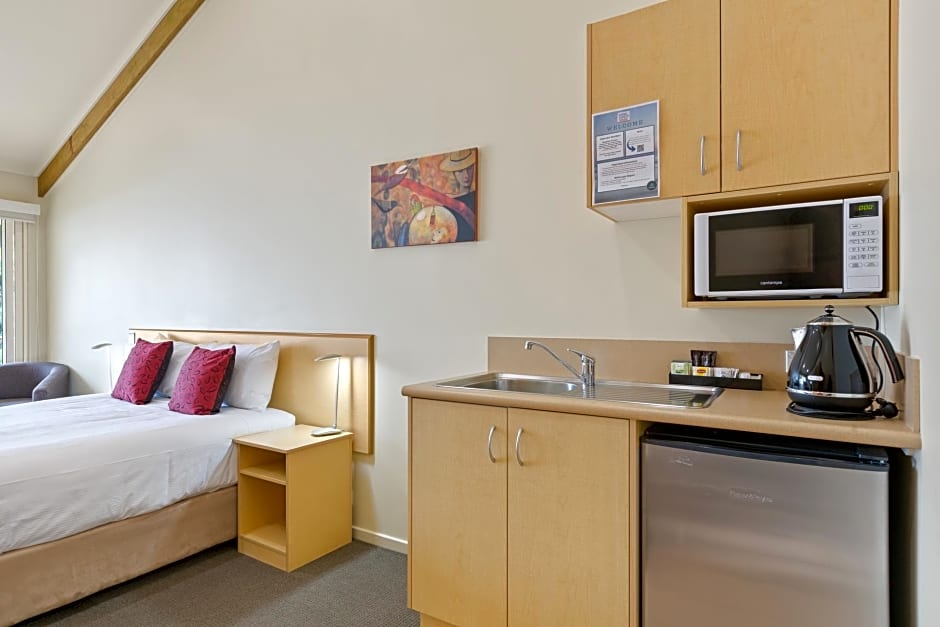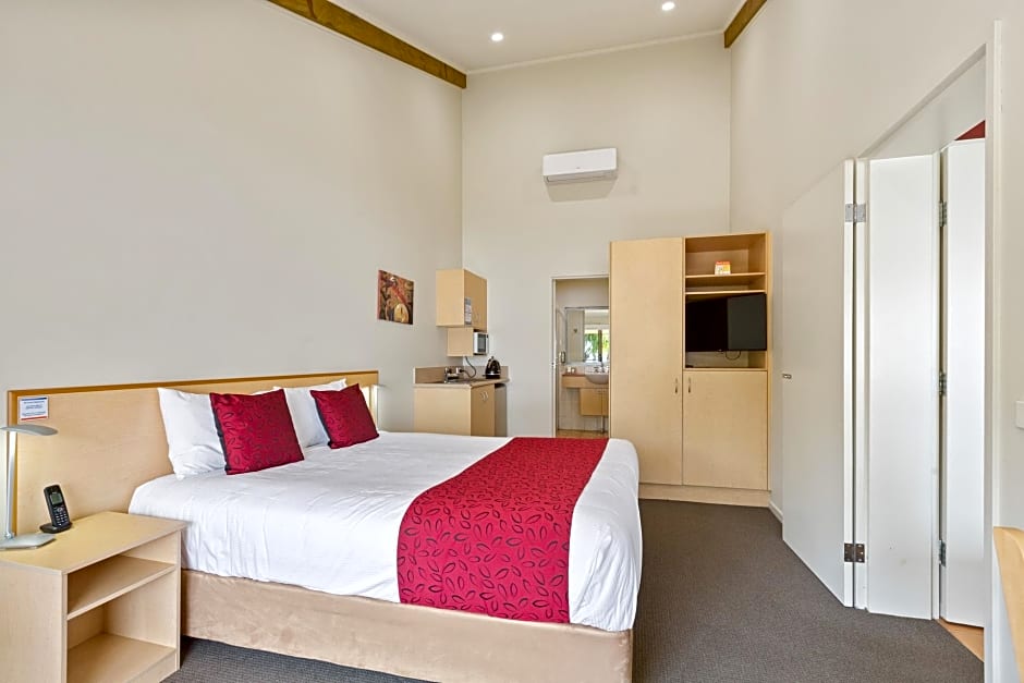 Motel Style Unit is 269 square feet and includes a king-size bed 150-183 width plus balcony, satellite tv , and tea and coffee making facilities .